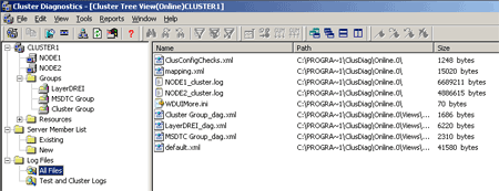 ClusDiag会在其安装目录中创建一些日志文件。对于群集中的每一个节点来说,它所创建的日志文件叫做节点名_ cluster.log,这个日志文件中包括了关于每一个节点的非常有用的信息。