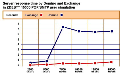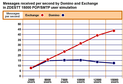 ZD 实验室,作为ZDNet.com的独立的测试和评价服务部门,在近期发表的报告中声称Exchange5.5的POP和SMTP的性能在许多关键的e-mail 测试中都远远超过了Lotus Domino R5。