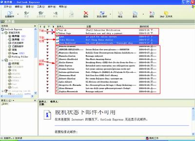 有朋友可能会认为该方法与使用远程邮箱功能大同小异,而且需要第二次登录服务器,比较麻烦。的确,这种方法与使用远程邮箱功能非常类似,但最大的区别就是:一个是在线操作,一个是离线操作,二字之差,效果却完全不同。首先,这样做克服远程邮箱功能中的两个缺点:操作者无需长时间在线,减轻了服务器的负担、减少了计时用户的费用支出;其次,能给你充分的时间去辨识垃圾邮件。由于把查看头信息和标识邮件的工作全部放在离线后进行,你完全可以等到有空的时候才做,给你最大的自由度。