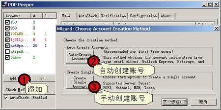 ★如果你有多个邮箱需要监视,可以按照上面的方法自行添加。POP Peeper也可以监视Hotmail/MSN/Yahoo等特殊信箱。