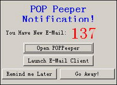 由于我们设置了定时检查,当有新邮件到达时,POP Peeper会弹出一个(如图6)