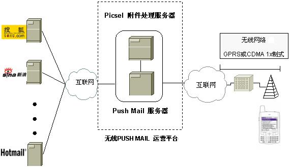 目前已有一些电信运营商选择已经了采用PUSH MAIL服务器或网关(例如:Smartner www.smartner.com 、 Visto www.visto.com、Blackberry www.blackberry.com)为其智能手持终端用户提供无线电子邮件的服务。其中以Blackberry 最为成功,目前已经拥有近3百万用户,Blackberry 只是针对企业用户,但用户必须使用其专用终端设备,并且其对多种通用格式的附件文件的浏览能力十分有限,加之其封闭性的结构和每月数十美元的服务费用,使其难于大面积普及。