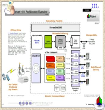 Picsel受专利保护的ePAGE™ 技术提供了一个统一的文件阅读和Web浏览的平台,可以在各种手持终端上忠实地显示Adobe PDF, HTML, Word, PowerPoint, Excel, JPEG, GIF, BMP, Text, Zip和其它多种格式的文件。与OS独立,意味着 ePAGE™ 可以在移动终端上资源有限的特殊条件下,对数据进行一致地、可预见地描绘,与终端屏幕的尺寸、色彩能力、操作系统等无关。