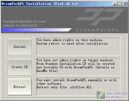 Windows XP系统登录密码是启动电脑后的第二道安全屏障,属于软件级密码设置方法,其安全性很高,一旦忘记它后果十分严重。虽然一些基于暴力破解的方法可以恢复出原始的登录密码,但非常耗时。其实,用户可以使用工具软件进行密码的重置,如免费软件——DreamPackPL(下载地址:http://www.d--b.webpark.pl/down/dreampackpl-2004-06-10.zip)。