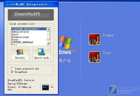 随后,重新启动Windows XP,在用户登录界面会出现DreamPackPL控制窗口(如图3),单击“Details”按钮,并选择丢失登录密码的账户名称,即可重新设置该账户的密码了。