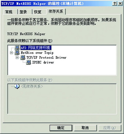 还要注意一点,很多服务之间存在着依存关系。比如,如果关闭Remote Procedure Call服务,Task Scheduler服务就无法工作。依次打开“控制面板” “管理工具” “服务”,双击某个想要关闭的服务或者选中某个服务后按右键选择“属性”,在属性窗口中选择“依存关系”选项卡,就可以看到某项服务依赖于哪些其他的服务(如图7所示)。