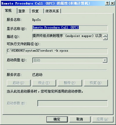 ● Remote Procedure Call (RPC):因冲击波(Worm.Blaster)病毒的发作而鼎鼎大名,但却是Windows必需的通信服务(图6)。