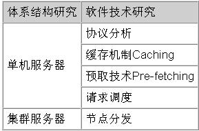1.从实现机制上入手。主要研究Caching技术、预取技术等。这方面的研究主要从客户访问行为分析入手,研究可以缩小响应时间的方法,这些技术可以在现有服务器设备的基础上尽可能地提高系统的性能,但性能提高的程度有限。