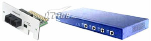 目前光纤传输介质发展相当迅速,各种光纤接口也是层出不究,不过在局域网交换机中,光纤接口主要是SC类型,无论是在100Base-FX,还是在1000Base-FX网络中。SC接口的芯在接头里面,如图3左图所示的是一款100Base-FX网络的SC光纤接口模块,其右图为一款提供了4个SC光纤接口的光纤交换机。图2中所示交换机中也有2个SC光纤接口。