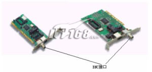 BNC则是专门用于与细同轴电缆连接的接口,目前提供这种接口的交换机比较少见。但在一些RJ-45以太网交换机和集线器中还提供少数BNC接口,专门用于与细同轴电缆作为传输介质的令牌网络连接。为了向大家出示BNC的真实外观,下面以BNC接口网卡向大家展示,如图5所示。