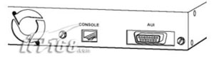 AUI接口是专门用于连接粗同轴电缆的,虽然目前这种网络在局域网中并不多见,但在一些大型企业网络中,仍可能有一些遗留下来的粗同轴电缆令牌网络设备,所以有些交换机也保留了少数AUI接口,以更大限度地满足用户需求。AUI接口是一个15针“D”形接口,类似于显示器接口。这种接口同样也在许多网络设备中见到,如路由器,甚至服务器中,如图4所示的就是路由器上的AUI接口示意图。