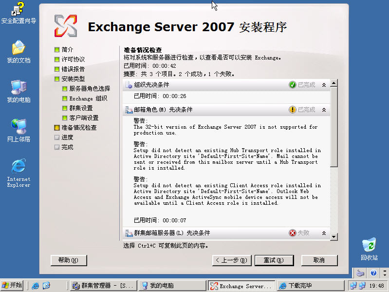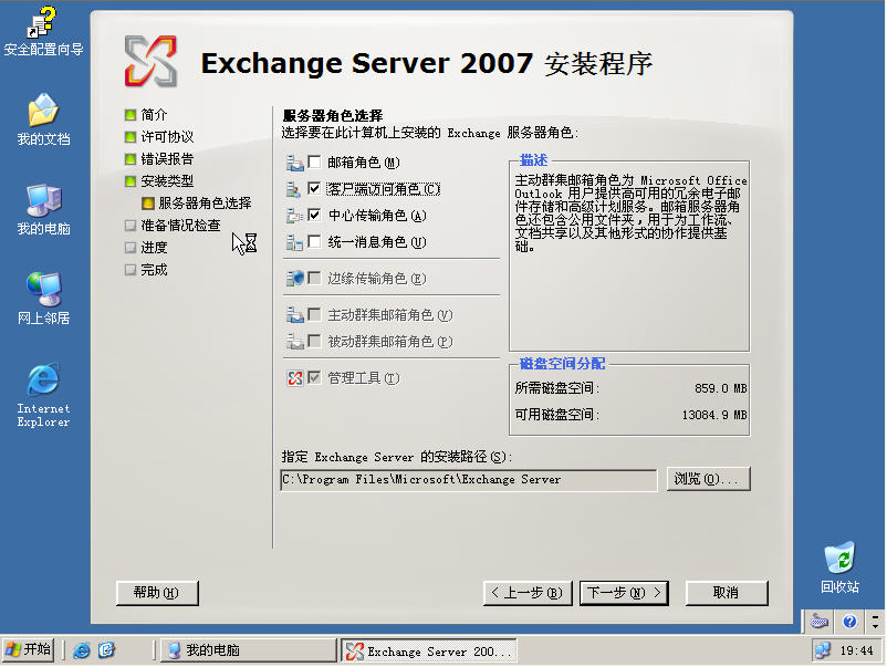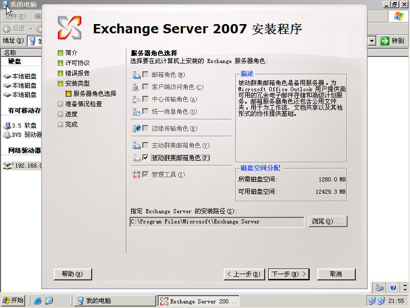 安装过程基本同上,但不同之处在选择服务器角色的时候要选择被动群集邮箱角色。