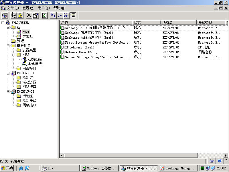 在安装完第二个节点后,我们现在打开群集管理器看看是否与Ex2003有所不同。