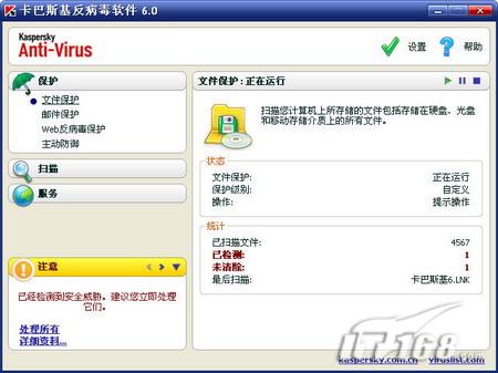 2.提示超多,因为现在卡巴斯基提供了全方位的安全防护,也就是说,部分提示与病毒无关,只能作为杀毒参考,普通用户完全不必理会。
