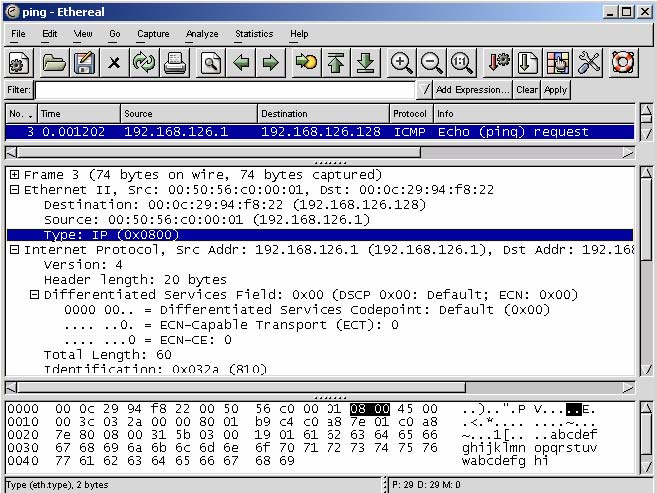 尽管Ethernet II 和802.3 的封包格式不同,但Ethereal 在解码时,都是从“类型”字段来判断一个包是IP 数据报还是ARP 请求/应答或RARP 请求/应答。