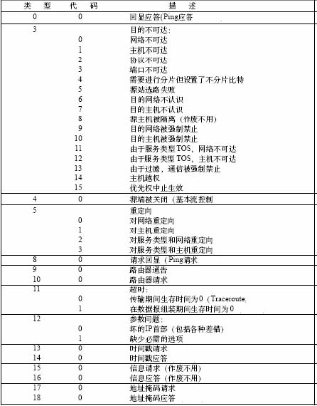 关于ICMP 的“类型”和“代码”字段,这里有一个表,如图1-16: