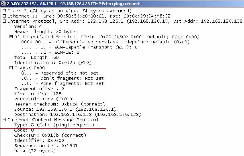 之后在主操作系统中使用ping 192.168.126.128 –t 的命令,来ping 虚拟机。好,我们来看看抓取的数据包。