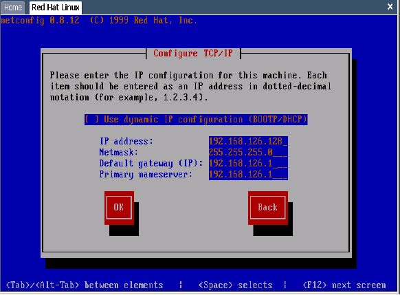 打开虚拟机,以root 用户登录redhat,输入setup,设置虚拟机IP 地址为192.168.126.128, 如图1-3: