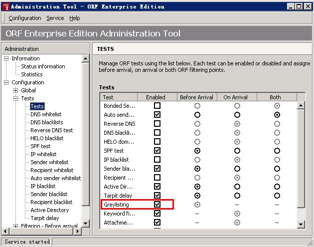 (1)在Test里启用Greylisting