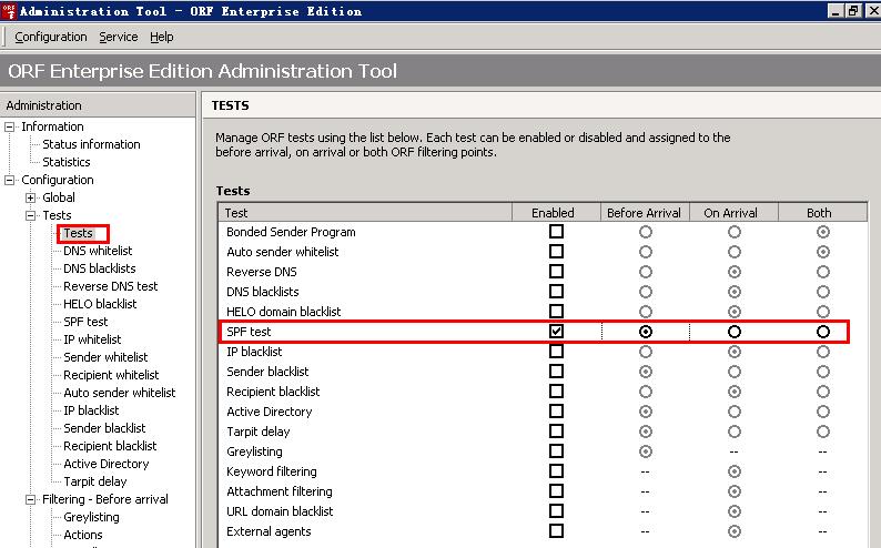 (1)在Tests里启用SPF test, 采用Before Arrival方式