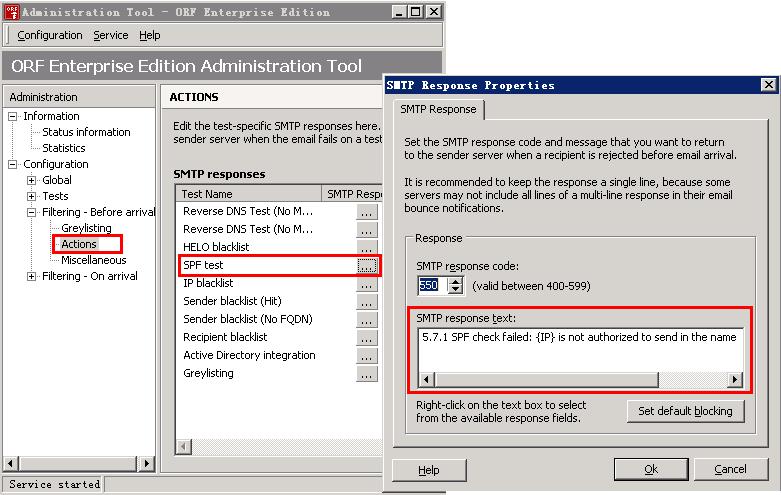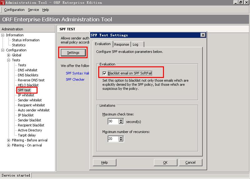 (2)在spf test里启用Blacklist email on SPF SoftFail, 则假冒他人域名发送的邮件则被拒绝.