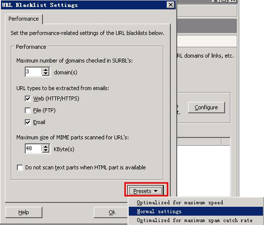 (2)选择SURBL黑名单, 建议使用"SURBL: Combind SURBL list"与"uribl.com blacklist"