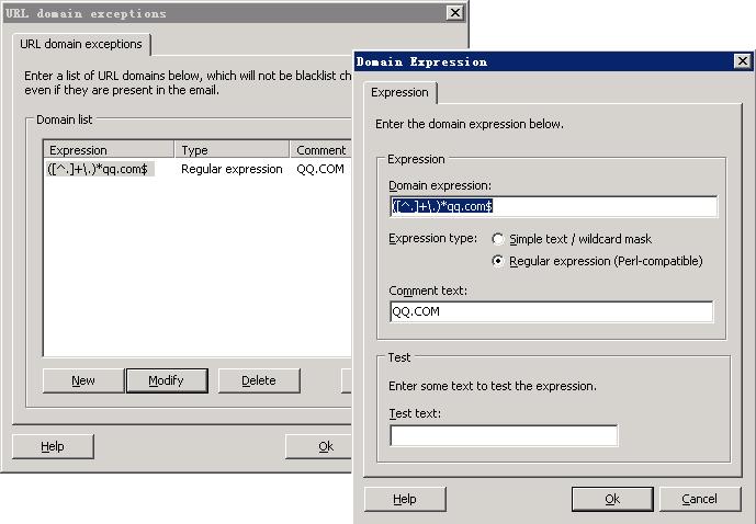 如果您想收到从qq.com发来的邮件,则按下图在exceptions把qq.com排除掉.