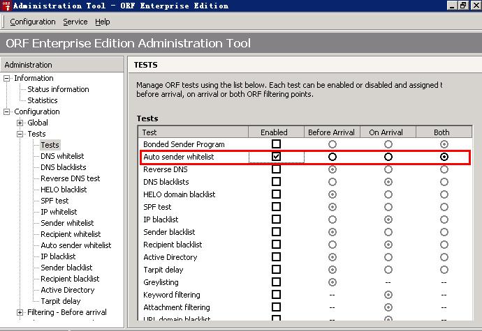 (1)在管理工具里的Tests启用"Auto sender whitelist"