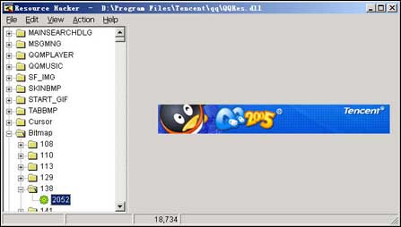 除供应用程序调用函数的DLL外,还有另一种用来保存资源的DLL,比如QQ目录下的QQRes.dll,用Depends打开后发现没有任何输出函数,难道是一个鸡肋DLL?可是改用资源工具Resource Hacker(下载地址:http://www.onlinedown.net/soft/12420.htm)打开这个DLL后,就发现原来其中保存了这么多QQ的资源,包括图标、音乐、图片、字符串、对话框……(见图3)