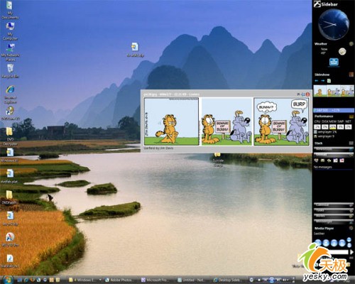 要在Windows XP中实现类似Windows Vista中Sidebar与Gadgets的功能,首先,可以考虑前面介绍过的Google桌面,不过,从上页的图中您可以看出,Google 桌面的工具栏与Windows Vista的Sidebar区别还是蛮大的,虽然从功能角度不好评说,但界面显示效果则是完全不同的风格。此外,另一个可考虑的对象是Yahoo Widget Engine,同样也存在着界面风格与Windows Vista存在距离的问题。