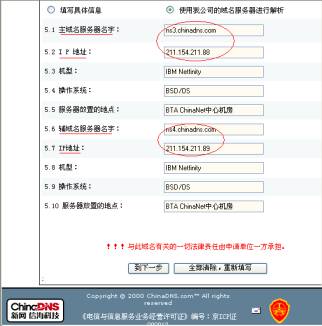 1) 自己申请域名foxmail.com.cn的时候需要填写域名服务器和IP地址,如图1所示:
