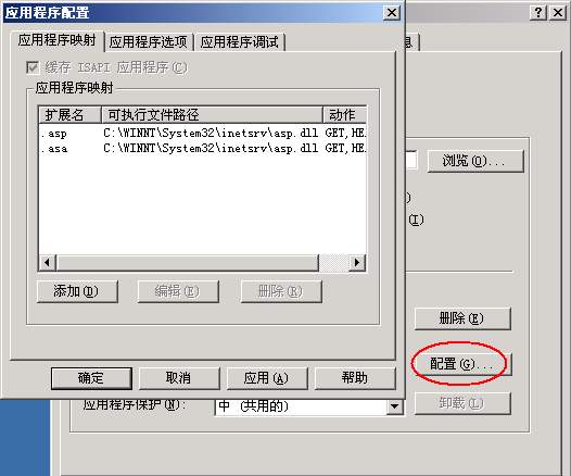为安全起见,只保留'.asp'和'.asa'的应用程序映射
