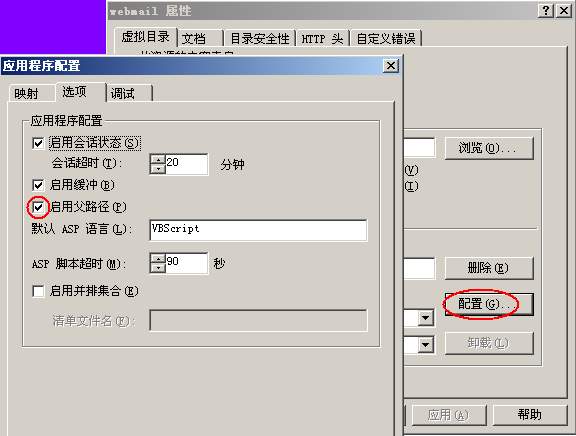 3、选择Webmail所在的站点(假设这个站点的访问方法为http://www.foxmail.com.cn),选择"WebMail"虚拟目录,属性信息: