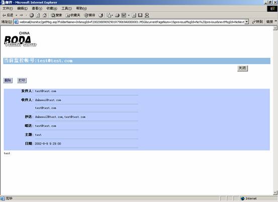 普通用户删除邮件并不会删除备份的监视副本,只有监视管理人员可删除一份或多份监视邮件。