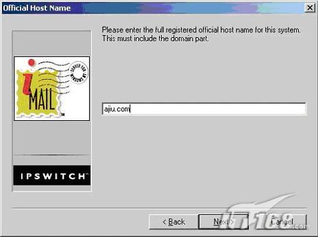 2) 单击NEXT按钮,打开Official Host Name对话框,在文本框中输入主机的名称,如ajiu.com,如图1