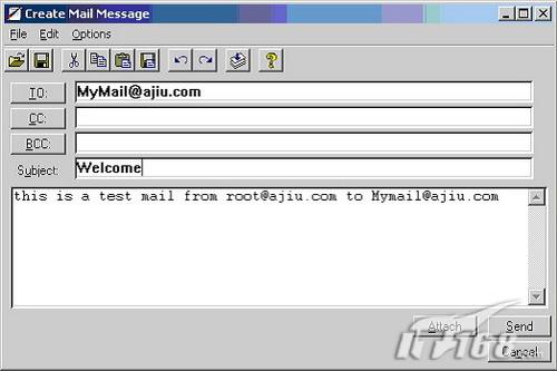 c) 单击上图中的Send按钮,给MyMail@ajiu.com发送一封测试邮件。如图19