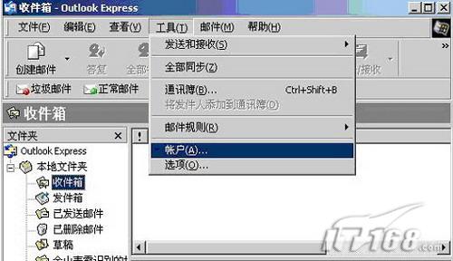 a) 启动OUTLOOK EXPRESS,选择“工具”菜单下的帐户,进行配置。如图20