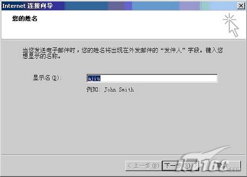 b) 根据INTERNET连接向导,为MyMail@ajiu.com配置发送邮件显示的名字。如图21