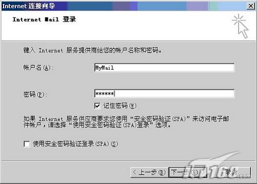 e) 单击“下一步”按钮,输入该用户MyMail的邮箱密码。如图24