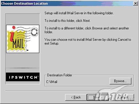 4) 单击NEXT按钮为IMAIL的安装选择路径,默认情况下安装在C:\IMAIL。如图: