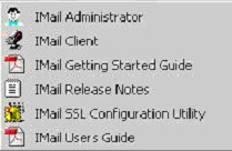 IMAIL安装以后,初次使用,我们可以从“开始”——>“程序”中找到所安装的IMAIL,在其级联菜单中有几项,其中IMAIL Adiministrator就是我们对IMAIL服务器进行配置的管理窗口,而IMAIL Client就是IMAIL的邮件客户端了。如图8