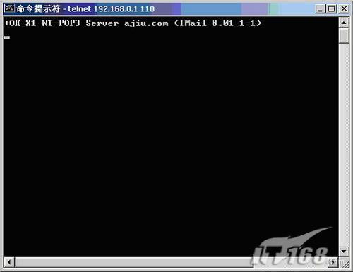 启动后可通过命令提示符查看服务启动结果。如Telnet 192.168.0.1 110 查看POP3服务启动情况。如图10