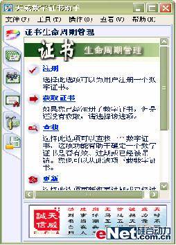 | 天威数字证书助手 天威数字证书助手是一个协助管理证书的工具。对于普通的证书用户来说,对数字证书往往是非常陌生的,要在实际使用中,对证书进行日常的维护和管理更是难上加难,。在这种状况下,有必要通过一种简单易用的工具来帮助证书用户减轻使用证书中的种种不便和痛苦,因此,天威诚信开发了证书助手产品来解决这些问题。 借助证书助手,用户可以方便的实现对邮件证书生命周期的管理、证书导入导出操作、证书密码修改、其它人证书管理、CA证书管理、文件加解密等功能,证书助手支持USB Key方式证书,能帮助用户完成日常操作中几乎所有的证书操作管理功能,最大的提升用户对证书的使用感受,使证书的易用性有了很大的提高。在这种方式下,用户不用直接和CA中心打交道,只需通过借助证书助手即可以实现对证书的所有管理和操作。证书助手的操作界面如下图3所示: ![]() 图3-天威数字证书助手 安全电子邮件服务分类 ![]() 应用效果 由于安全电子邮件服务可以实现方便快捷的部署及安全电子邮件服务的强针对性,天威诚信推出此项服务已赢得了天融信、福特汽车、盛大网络、普利斯通等优秀企业的信赖,其在易用性方面的投入已收到了不错的效果,证书助手功能的不断丰富,也为安全电子邮件服务的市场注入了新的活力,为进一步加大安全电子邮件服务的应用起到了积极作用。 |