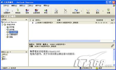 Mail2MO无论是联系人管理还是已发/待发/删除短信的存储管理都是与Outlook Express固有的邮件功能合二为一的,这种整合管理的方式使得用户可以保持贯有的操作习惯。当然若要使短信与邮件有所区别,可新建文件分别放置。