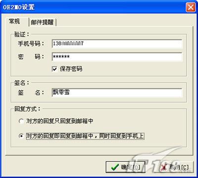 另外也可设置回复到手机上(但需要对方付一条短信的资费)。