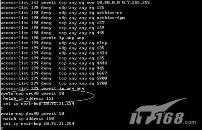 策略路由主要应用在企业路由表复杂或者需要对路由进行控制的情况下,特别是当企业网络出口有两条,需要对不同服务和应用或者不同客户端的路由进行控制时,当然企业内部跑两个网络也经常要用到路由策略。笔者将在下篇文章为各位介绍一个应用路由策略的实际例子,帮助各位IT168的读者更好的灵活掌握路由策略的概念和应用,让我们更加熟悉网络中的高级交通警察,更加灵活自如的控制网络数据包为我们的企业网络多种应用服务。