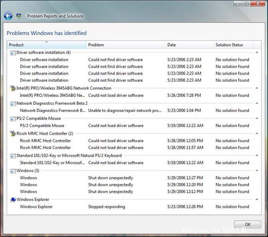 不过,微软的新“问题报告解决组件”并不让人满意,在测试中,这一组件汇报了一台测试PC的24个驱动问题,另一台16个--解决方案处则明确写着:无。看来,目前该功能依旧是微软搜集驱动兼容信息的工具,还没有真正起到解决问题的作用。