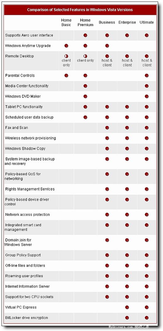 值得注意的是,如果使用Home Basic版Vista,你完全不用购买/升级PC,相对Ultimate版Vista,Home Basic版缺少如下组件/功能:Media Center, Tablet PC, Windows Aero支持 Windows DVD Maker, Windows Fax&Scan, Windows Movie Maker HD。