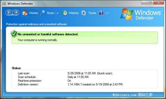 虽然Windows Defender的即时间谍、恶意软件监控功能让人心动,但是在Vista Beta 2版Defender中却存在一个严重的“定期扫描Bug”。