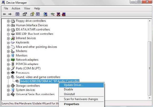 首先进入Device Manager在你要安装驱动的硬件图标上点右键,选择Update Driver。